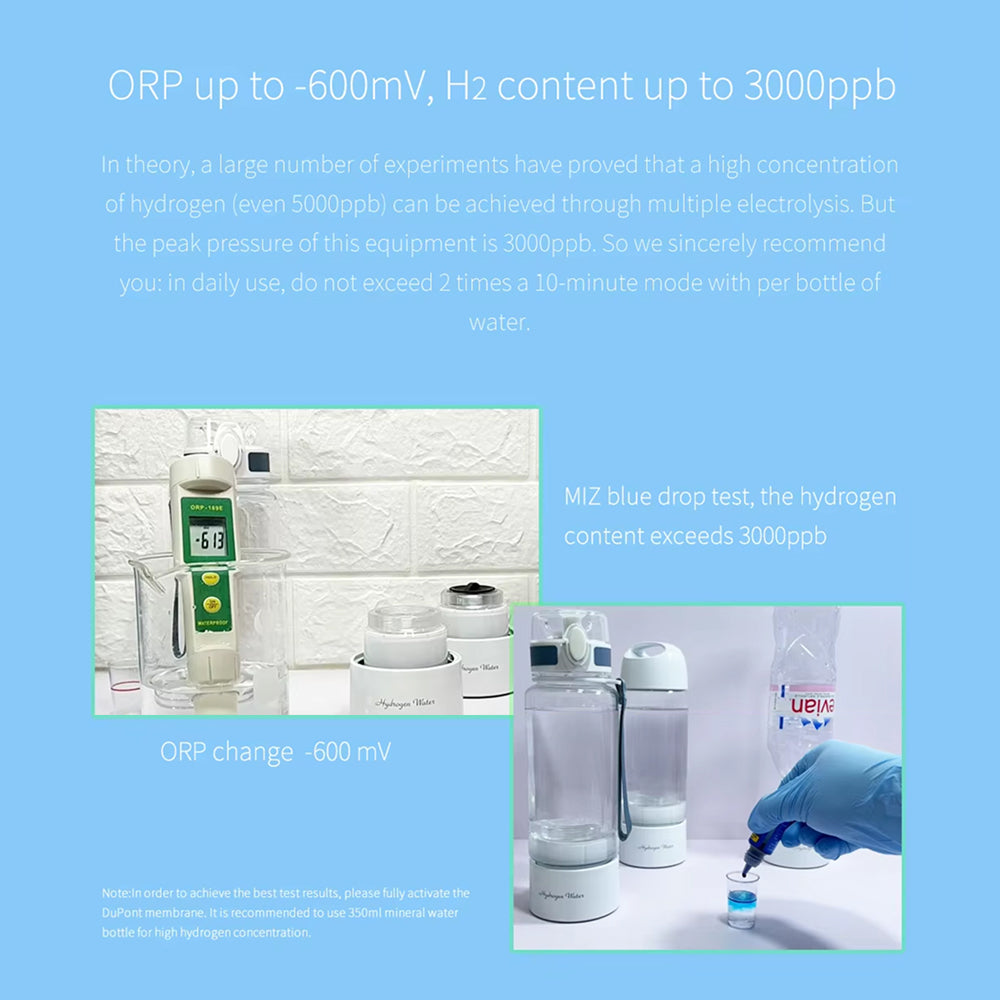 The strong 3000mAh battery offers plenty of power between charges, allowing long use without constant recharging worries while you enjoy therapeutic hydrogen water throughout your day no matter where you go.